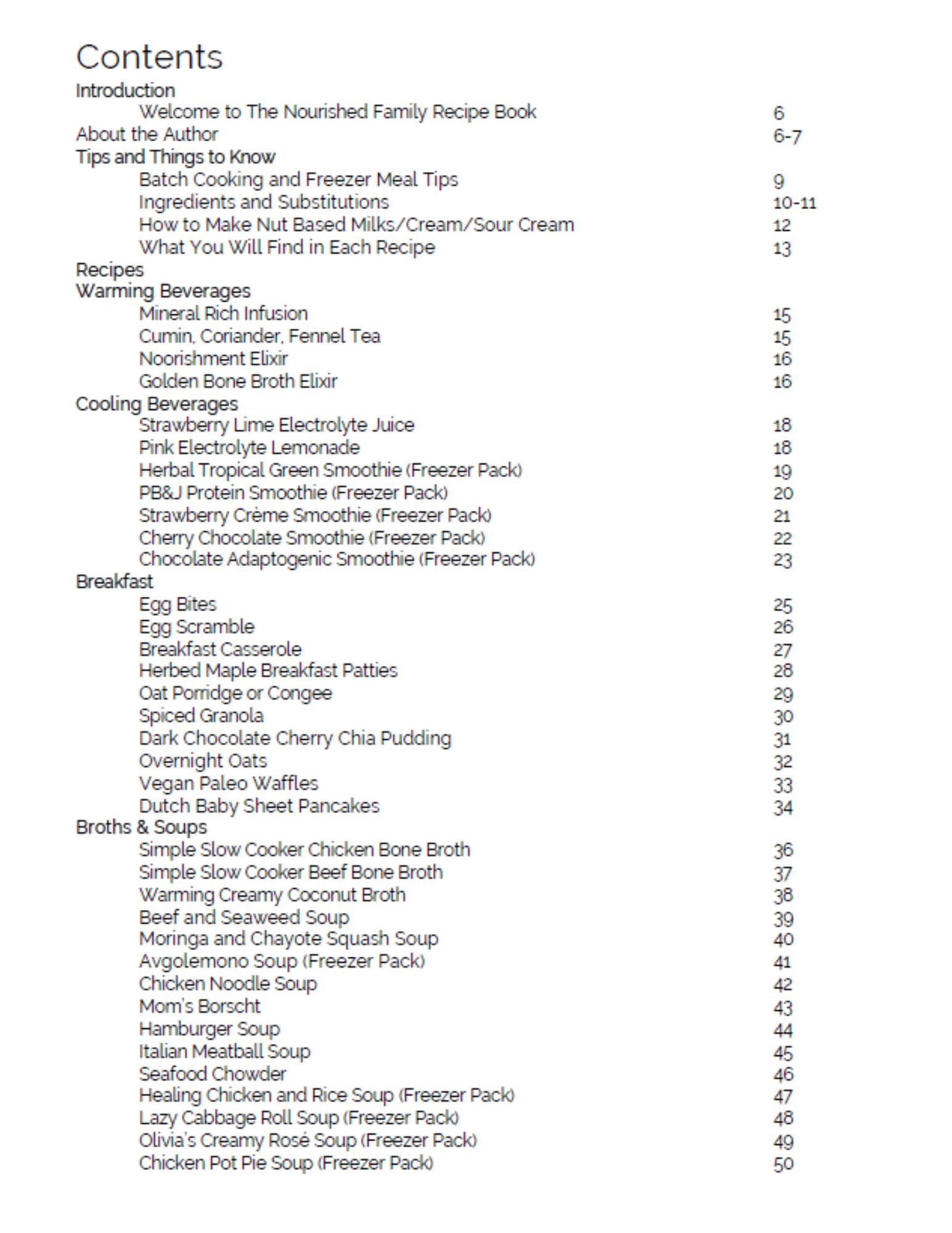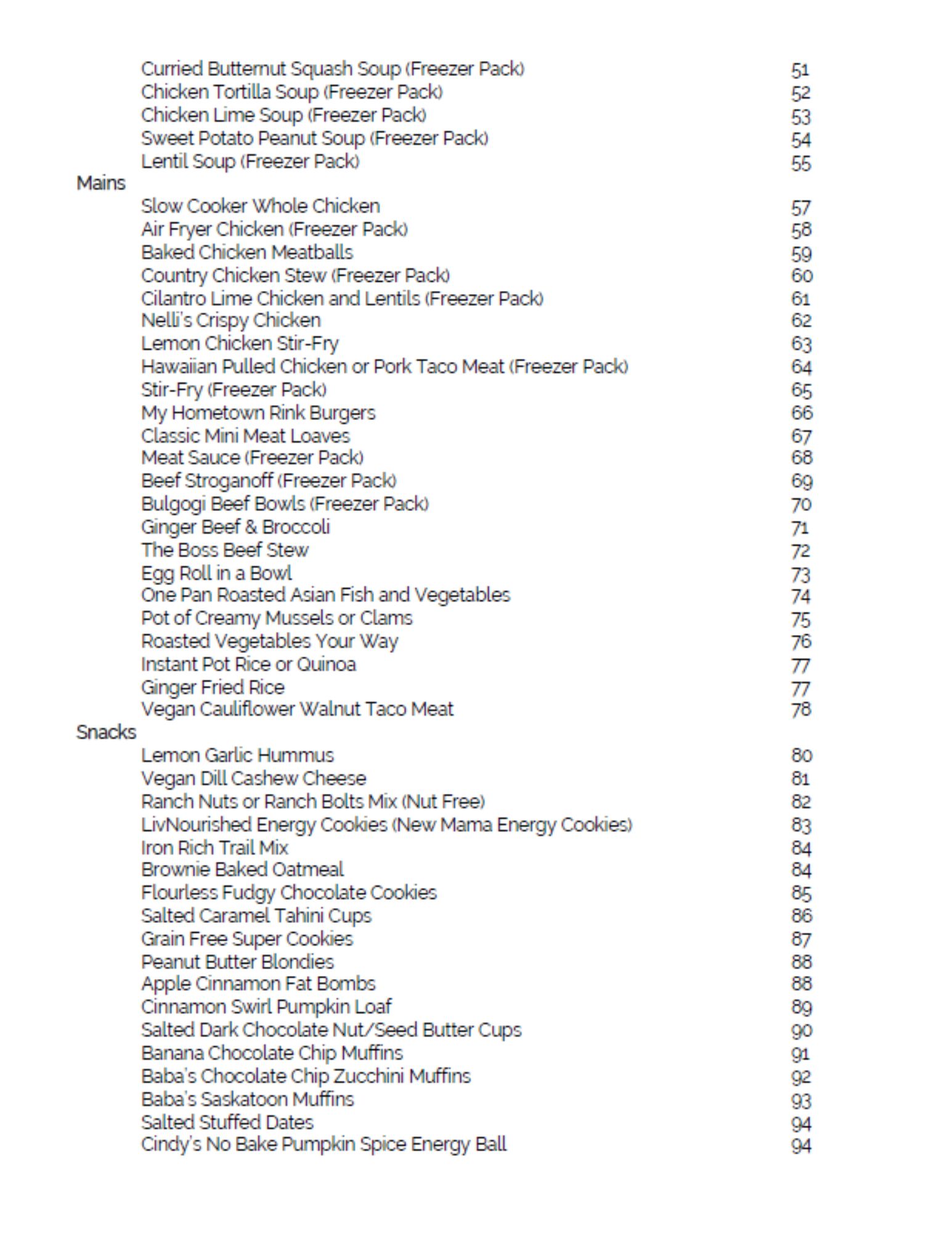 Take a look at all the recipes inside, all of which can be adjusted to your dietary needs. These recipes focus on warming, easy to digest, highly nutritive, high protein, simple to prep and one-handed meals and snacks that are easy to make or can be frozen for later use. Everything is laid out for you so we can minimize the mental load it takes to think of meal ideas and how to prep them in an efficient way. We've also recorded multiple cooking tutorials for you to have the exact visual steps of how to make some of our most popular recipes.